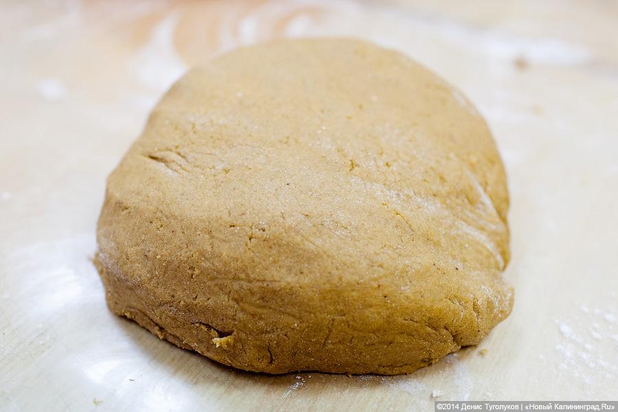 — Мы высыпаем полтора стакана сахара в глубокую сковороду и ставим на огонь. Доводим до жидкого состояния и коричневого цвета, помешивая. Затем осторожно вливаем 200 мл кипятка и всыпаем оставшийся сахар, добавляем порезанное масло и мешаем до полного растворения всех ингредиентов. Полностью остужаем получившуюся жженку. Размешиваем желтки и яйца, вливаем в жженку. Добавляем сухие духи, соль, соду, муку и вымешиваем тесто. Ставим как минимум на сутки тесто в холодильник для его полного вызревания. Такое тесто может храниться в вашем холодильнике около двух месяцев.