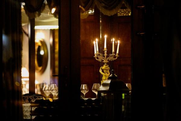 Бронзовые канделябры, статуэтки из фарфора, зеркала в золоченых рамах, картины разных эпох и техник исполнения, антикварные безделушки, свечи, консоли на выгнутых ножках, бархатные портьеры, ларцы, гобелены, белоснежные скатерти на столах, нарядная елка в окружении бутылок с французским шампанским — все это великолепие создавало двойственное впечатление.