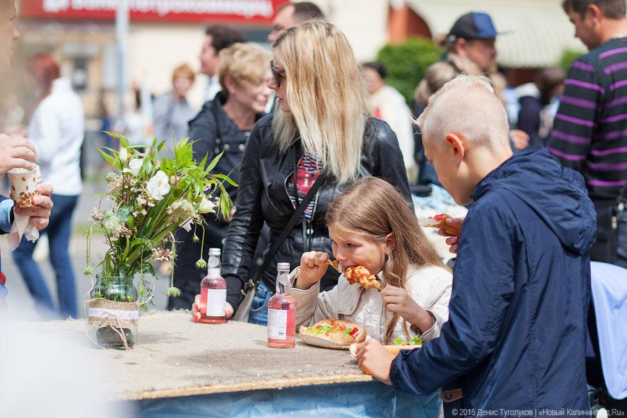 По традиции начнем с хорошего. Кажется, что все удалось: голодным никто не остался, вся та еда, которая еще недавно воспринималась как «еда для модников», — окончательно легитимизировалась на, наверное, самом народном городском празднике. Во всяком случае, аккуратные деревянные палатки у входа на стадион «Балтика» и выступления калининградских гатсроэнтузиастов стали неплохой альтернативой уже успевшим за несколько лет поднадоесть салатам в пластиковых упаковках, шашлыкам, плову и нехитрой выпечке. Хотя, с другой, более критичной стороны, День города все же не совсем удачный показатель: здесь вся еда в принципе уличная, на празднике много людей, и они едят всё то, что можно есть, и не брезгуют ни шашлыком, ни пловом, ни пирожком, ни уж тем более бургером.