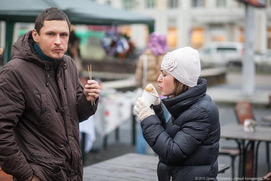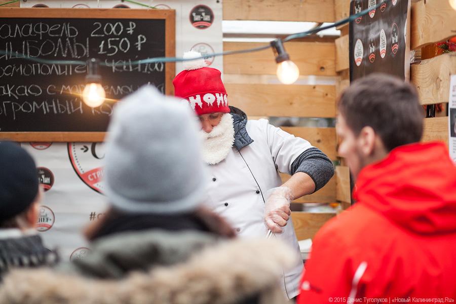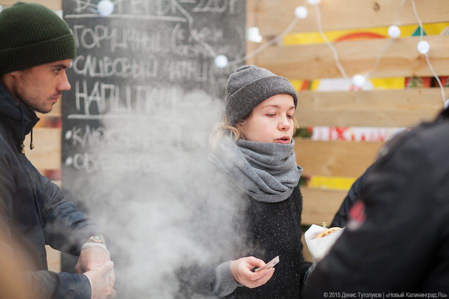 «Рестораны Нового Калининграда.Ru» побывали на Рождественской ярмарке около стадиона «Балтика», постояли в очереди за бургером с говядиной и бургером с пеламидой под мелким дождем, выпили какао, никаких подарков не купили, а снега так и не дождались.