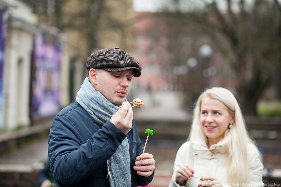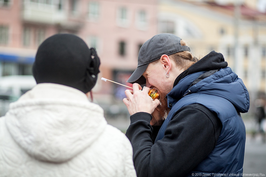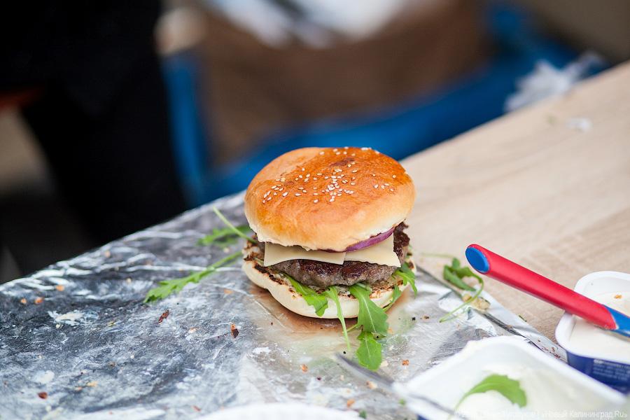 Подробно рассказывать о достижениях участников ярмарки нет особого смысла: все выступили довольно ровно. Отдельно порадоваться можно за команду «Rattler» — ребята наконец стали класть говяжью котлету в булочки собственного производства (точнее, они уже давно путем десятков проб подобрали подходящую рецептуру и нашли подходящую пекарню). Булка у «Rattler» по субъективному ощущению пока что самая вкусная и очень мягкая. Было и два удачных дебюта: как бы кёнигсбергские клопсы, свиные рёбра и бургер с пеламидой от бистро «Пруссия» и