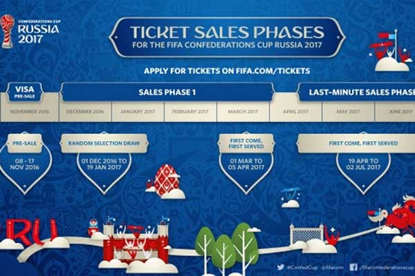 В четверг, 1 декабря, на официальном сайте Международной федерации футбольных ассоциаций стартовал очередной этап продажи билетов на матчи Кубка Конфедераций, который пройдет в четырех городах России с 17 июня по 2 июля 2017 года. В отличие от предыдущего этапа, когда купить билеты могли лишь держатели карт Visa, в этот раз оставить заявку на приобретение может любой желающий.