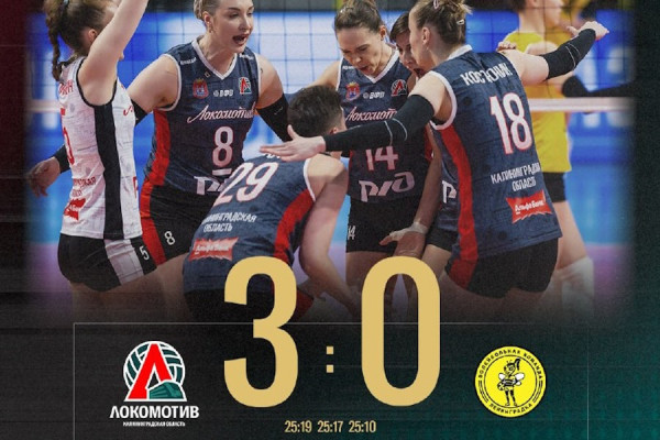 Калининградский «Локомотив» вышел в полуфинал Кубка России. Во втором матче группового этапа Финала Шести калининградская команда победила «Ленинградку» со счетом 3:0 (25:19, 25:17, 25:10). Матч прошел 1 мая в Санкт-Петербурге, сообщил корреспондент «Нового Калининграда».