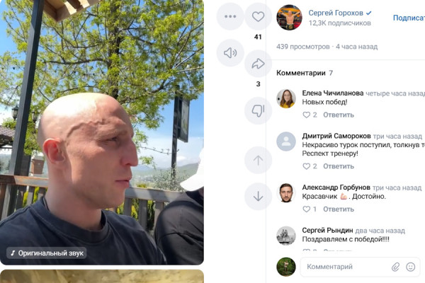 Видеокомментарий Горохов опубликовал на своей странице «ВКонтакте». Там он сообщил, что уже находится в Грузии, и что бой прошел «терпимо», несмотря на сотню «сумасшедших» турецких болельщиков, принявших участие в потасовке.