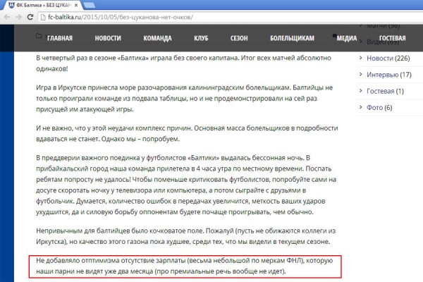 Как следует из сообщения, долги по заработной плате «не добавляли оптимизма» футболистам калининградской команды перед началом встречи с иркутянами, закончившейся поражением гостей.