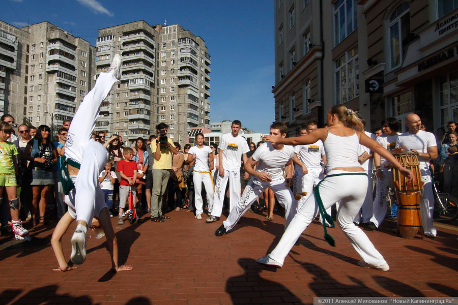- В Москве капоэйра появилась в конце 90-х, приехали мастера из Бразилии, поводили первые семинары и тогда же набирали первых учеников, ученики развивались, и постепенно возникали школы. Да и Россия, как страна, где практикуют капоэйру, всё больше интересовала бразильцев, португальцев. В Калининграде пока одна школа, но мы работаем над этим, очень бы хотелось, чтобы происходило развитие.