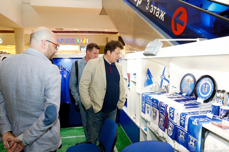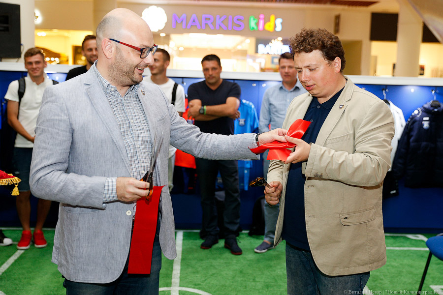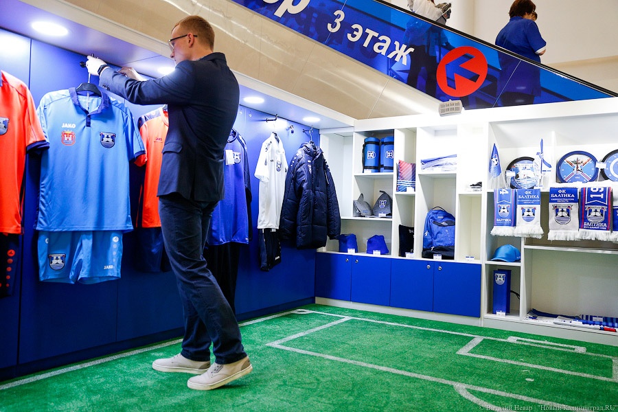 В четверг, 17 августа, в торгово-развлекательном центре «Европа» открылся первый в истории калининградской «Балтики» магазин клубной атрибутики, в ассортименте которого оказались представлены как традиционные для подобных точек вещи (сувениры с символикой клуба, игровая форма и фирменные шарфы), так и довольно неожиданные предметы вроде брендированных банных принадлежностей. В торжественной церемонии открытия магазина приняли участие генеральный директор «Балтики» Тимур Лепсая, а также футболисты и главный тренер команды Игорь Черевченко.