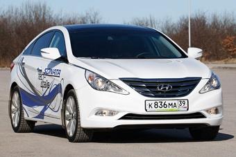 Бензиновый силовой агрегат едва ли можно назвать особо экономичным (расход топлива на 100 км в городе составляет 11,3 л, на трассе — 6,1), но благодаря ему Sonata обладает отменной динамикой. До 100 км/ч почти двухтонный автомобиль разгоняется за 9,5 секунд (максимальная скорость — 210 км/ч). Акселератор очень чувствителен — машина буквально «рвет» с места при малейшем нажатии.
