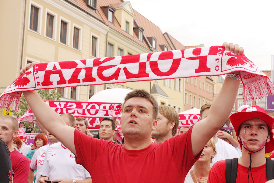 В пятницу, 8 июня, национальная сборная России по футболу в первом групповом матче Чемпионата Европы-2012 одержала разгромную победу над командой Чехии со счётом 4:1 и возглавила турнирную таблицу группы А (соперники россиян по группе, сборные Греции и Польши сыграли между собой вничью — 1:1). Однако до начала встречи каждый из тысяч заполнивших небольшой польский город болельщиков был уверен в победе своей команды. Накануне матча по улицам Вроцлава вместе с многочисленными любителями футбола прогулялся фотокорреспондент «Афиши Нового Калининграда.Ru».