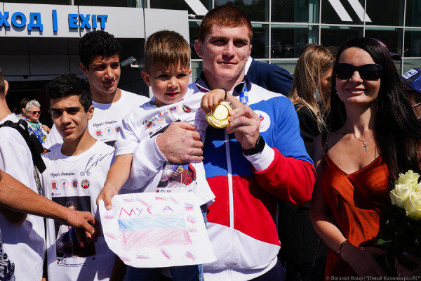 Борец греко-римского стиля Муса Евлоев, выигравший на Олимпиаде в Токио золотую медаль, в понедельник, 9 августа, прилетел в Калининград. В аэропорту «Храброво» его встречала масштабная делегация с министром спорта региона Натальей Ищенко и тренером училища олимпийского резерва Владимиром Хромовым, под руководством которого Евлоев начинал профессиональную спортивную карьеру. В Россию из Японии борец вернулся несколько дней назад и по прилете в Москву станцевал лезгинку. В Калининграде лезгинку танцевали уже встречающие для него.