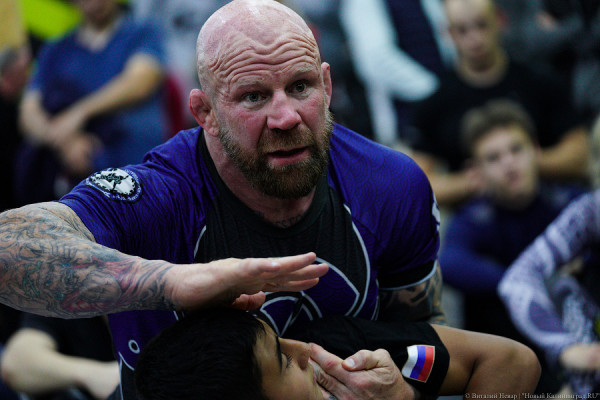 Джефф Монсон — американский боец смешанных единоборств и джиу-джитсу, ставший в 2018 году российским депутатом. Он приехал в Калининград 19 сентября, чтобы дать мастер-класс в спортивном зале Russian Top Team и стать крёстным одной калининградской семьи. Обряд прошёл в храме Покрова Пресвятой Богородицы на улице Клавы Назаровой. Таинство осталось таинством, а вот за происходившим в спортзале наблюдал фотокорреспондент «Нового Калининграда» Виталий Невар.