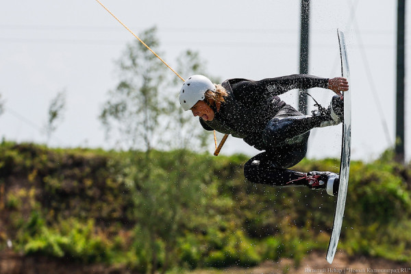 В посёлке Аистово Гурьевского района открылся новый вейк-парк. Вейкбординг — это почти как сёрфинг, только с верёвкой и без волн. Вот как этот вид спорта выглядит на фотографиях нашего корреспондента Виталия Невара.