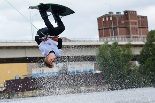 В Калининграде второй год подряд проходят всероссийские соревнования по вейкбордингу. Это по-настоящему экстремальный и зрелищный вид спорта — спортсмены выполняют трюки, стоя на доске и держа в руках трос, прикреплённый к движущемуся катеру. Фронтроллы и фронтфлипы крутят мужчины, женщины и дети. Возраст спортсменов очень разный: самым маленьким — около восьми лет, старшим — около 50. В репортаже фотокорреспондента «Нового Калининграда» Виталия Невара — яркие моменты первенства, прошедшего 14 июля у речного клуба «Пирс» на улице Ялтинской.