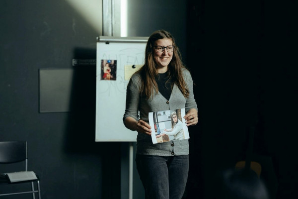 «Спектакль „Лес.Ангелина“ — это философский stand up от девушки из посёлка городского типа. Ангелина Засенцева разбирает на атомы своё имя, родословную и географию своих перемещений по России. Ангелина проверят свою гармонию (вернее, дисгармонию) алгеброй вопросов философа Владимира Бибихина и его книги „Узнай себя“», — говорится в анонсе.