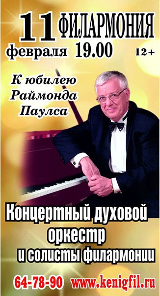 Ощутить атмосферу праздника еще до его прихода вы сможете на концерте «Теперь не я пою — любовь поёт», который пройдет в филармонии 11 февраля в 19 часов. Вас ждет встреча с самыми «убойными» и зажигательными хитами Раймонда Паулса — от «Листьев желтых» до «Вернисажа» и «Танца на барабане». Чудесную музыку Маэстро вы услышите в исполнении Концертного духового оркестра и солистов филармонии — Виктории Бобковой и Александра Дудницкого.