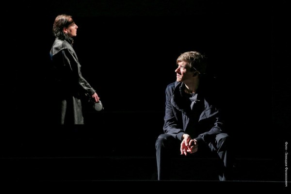 Действие спектакля несколько раз прерывает кромешная темнота. Она наступает резко, как внезапный обморок. Не видно ничего, только нервно пульсирует рыжий огонёк