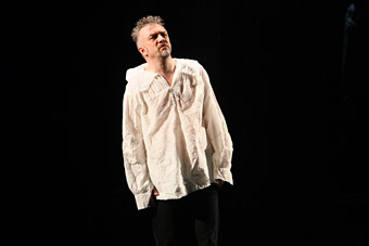 Часть зала уходит. Женщины, сидящие сзади меня, называют происходящее на сцене (до этого они полушепотом обсуждали цветение каштанов) словом «креативненько», другие дамы делятся впечатлениями от сценографии: «Нет, то, что вода льется на сцене — это нормально, а то, что вот костер на сцене жгут — это неправильно», — и уходят во время первого антракта. Им не повезло: они не в первый и не во второй раз, точнее — уже никогда не смогут увидеть: ни то, как во время игры в прятки от невозможных, постоянных хлопков со всех сторон сходит с ума и падает замертво Офелия; ни то, как Гамлет — седой взъерошенный ежик волос на голове, бумажная раскисшая рубашка на груди от капель с ледяной люстры — не говорит, а бормочет свой монолог, мечту всех юношей, поступающих в театральное училище; ни то, как Клавдий в бешенстве громит эту самую как бы хрустальную люстру, и осколки льда рассыпаются — по сцене; ни то, как обезумевший
