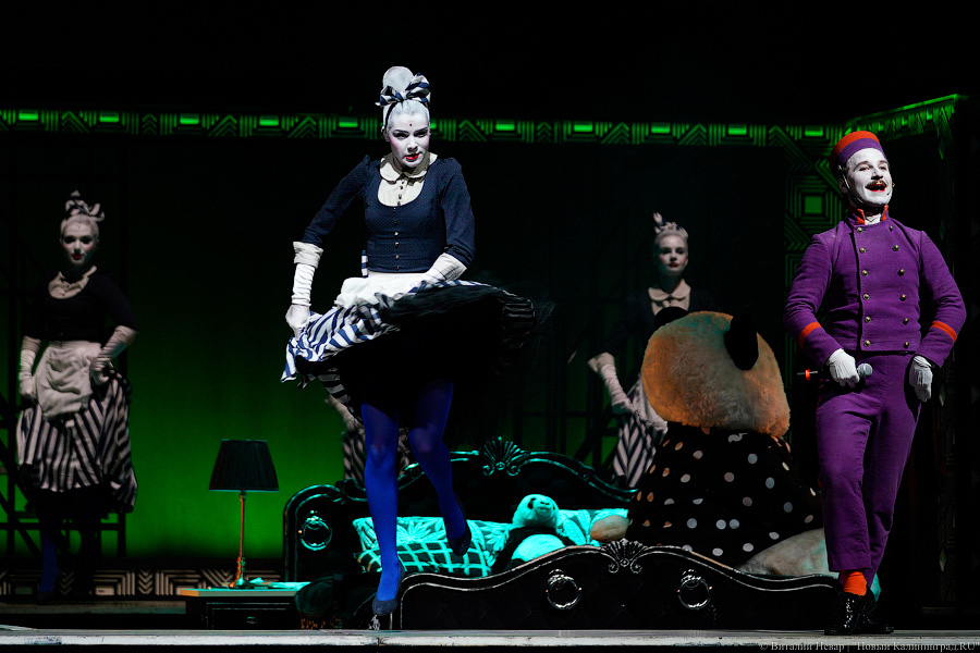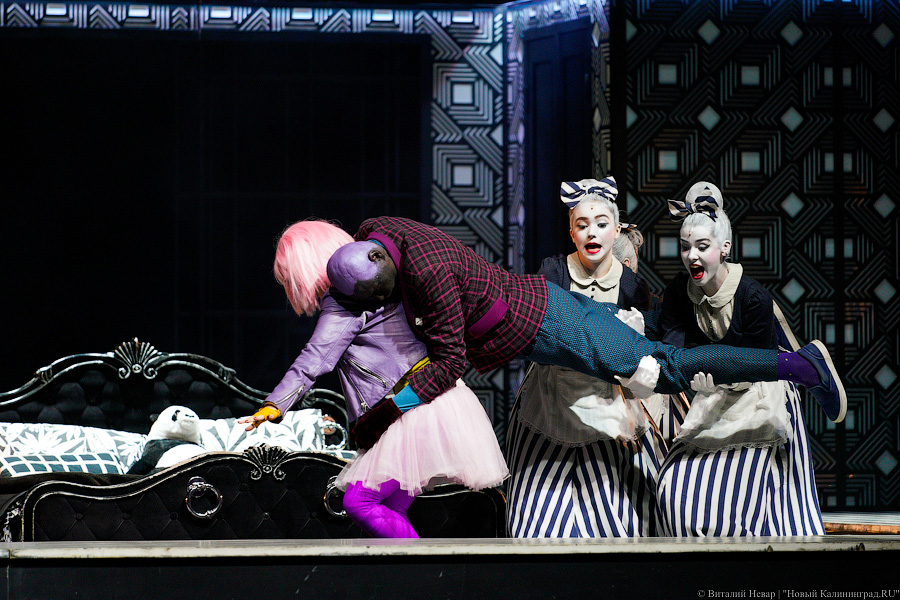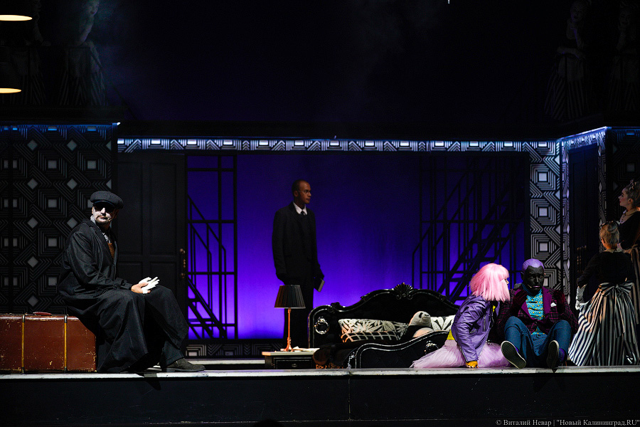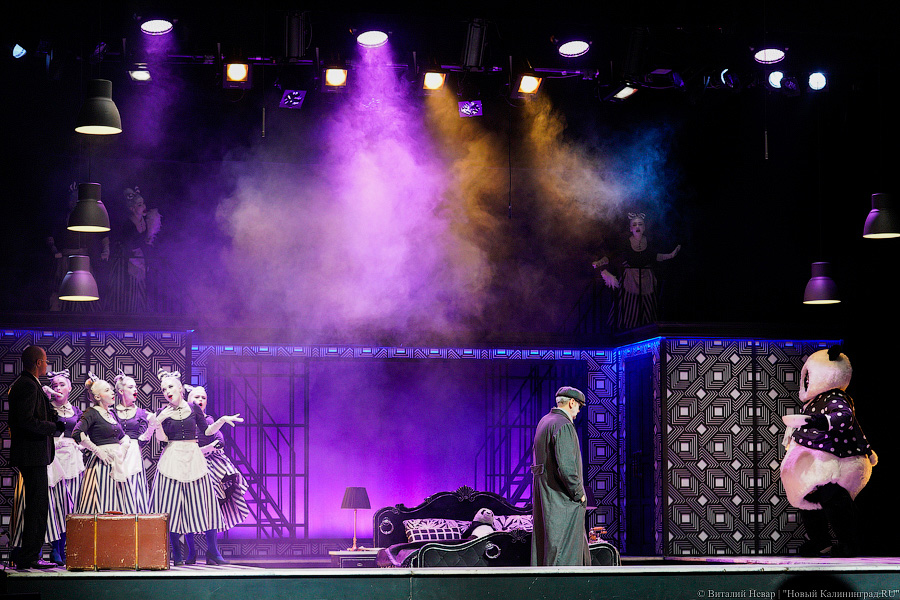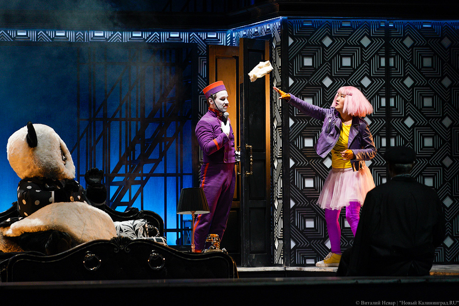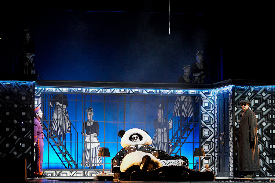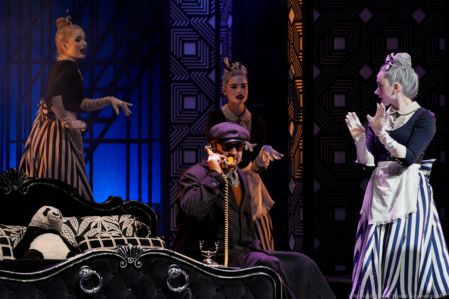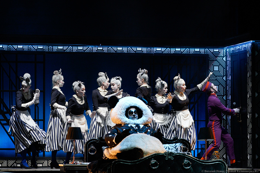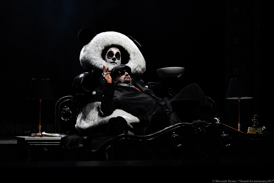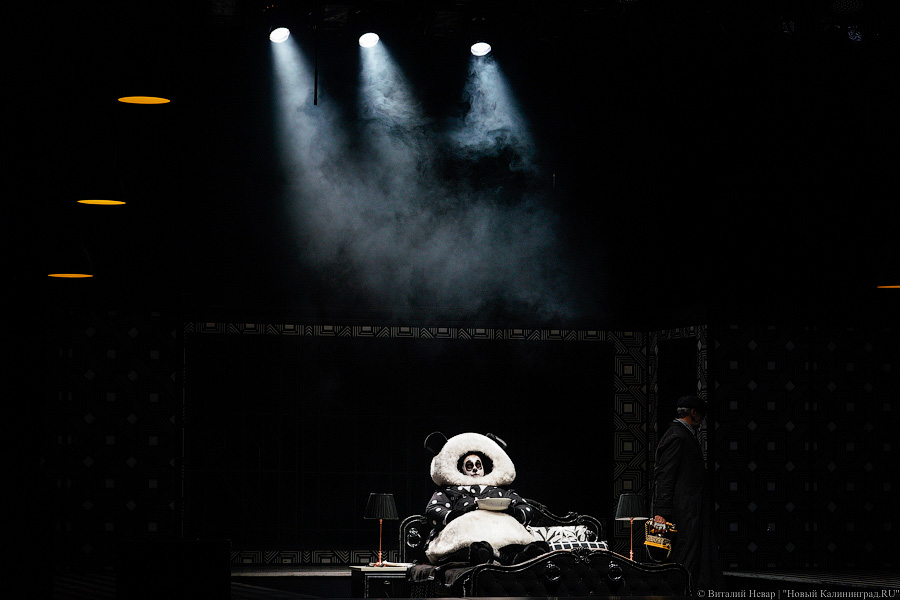 На сцене — типичная картинка из американского кино — гостиничный номер, горничные в накрахмаленных белых фартуках, портье в форменной фуражке, но снимали этот фильм будто Тим Бёртон в тандеме с Уэсом Андерсеном. Легко представить, что служанки с выбеленными лицами и в полосатых платьях а-ля миссис Ловетт из «Суинни Тодда» убирают номер отеля «Гранд Будапешт». Хоть Владимир Панков и утверждает, что не смотрит, а слушает спектакли, все его работы выверены визуально.