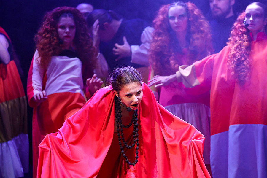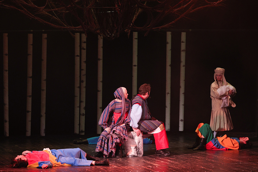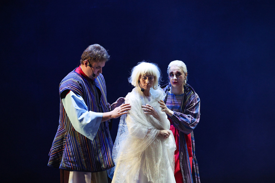 В качестве художника по свету пригласили ещё одного лауреата «Золотой маски» — Дениса Солнцева. Пару лет назад он уже работал со «Снегурочкой» в Мариинском театре, но то была опера Николая Римского-Корсакова. Музыку к калининградской постановке написала местная 23-летняя композитор Ева Симуран, и это большое открытие, которым Музыкальный театр может по праву гордиться. Ева Симуран сплела в единое полотно фольклорные мотивы, тягучий эмбиент и выразительную эпику в манере Ханса Циммера. Получилось масштабно, содержательно и невероятно красиво.