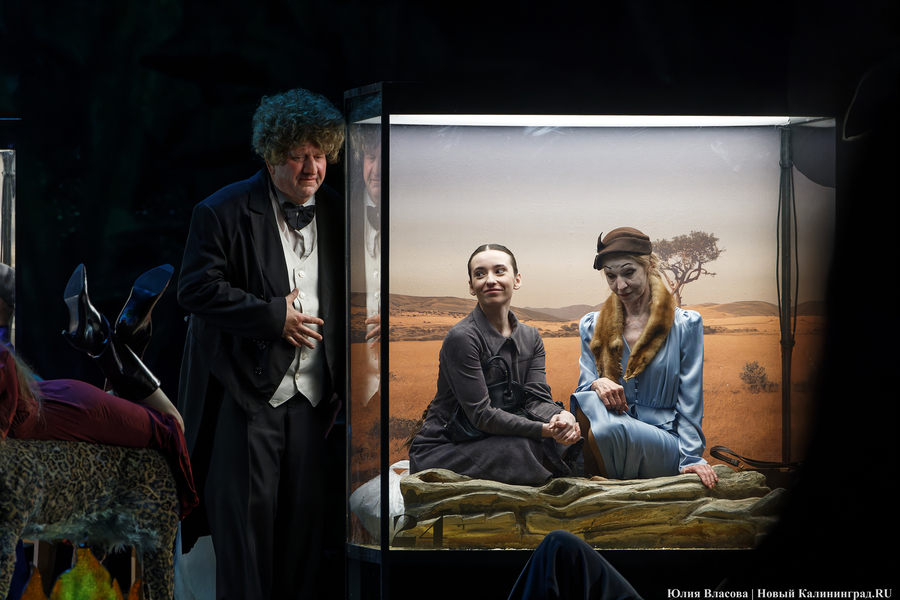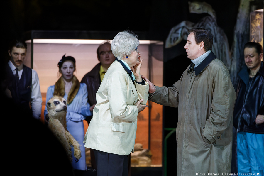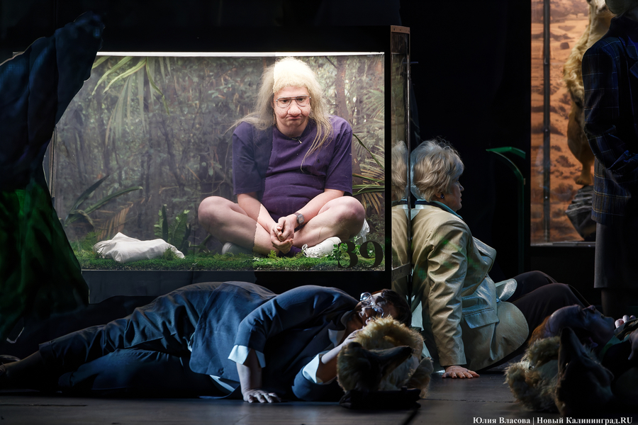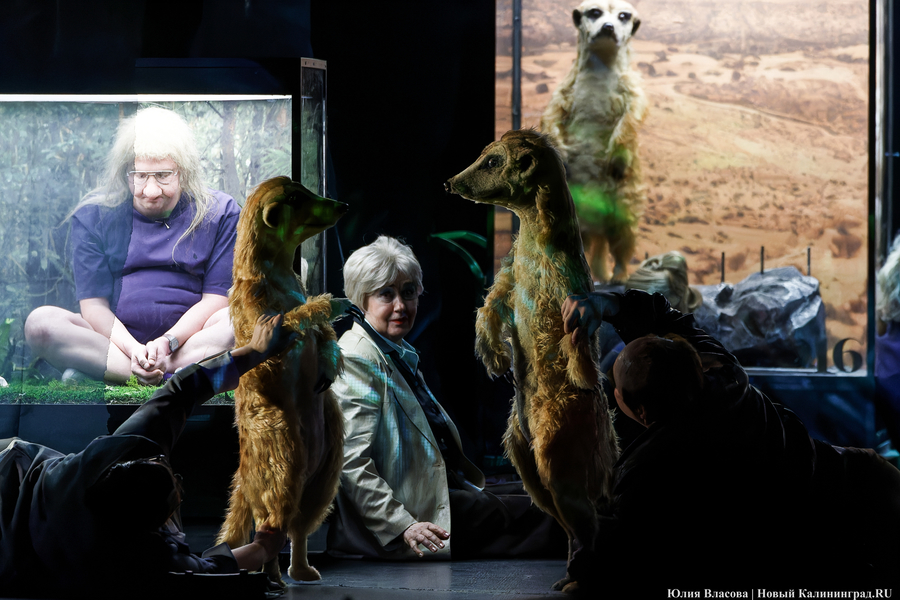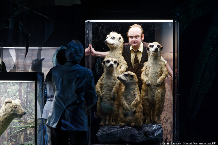 Второй акт показался более глубоким. Как минимум в том смысле, что был поднят занавес и члены гаражно-строительного кооператива «Фауна» оказались в Зоологическом музее среди чучел. Посыл авторов сценария здесь считывается легко. Персонажи находятся как бы в джунглях, где, по идее, каждый должен быть сам за себя, где сильный пожирает слабого и где идет беспрестанная борьба за выживание. При этом один из героев (актер Павел Самоловов) произносит монолог о том, что животные гораздо лучше, чище и милосердней людей.
