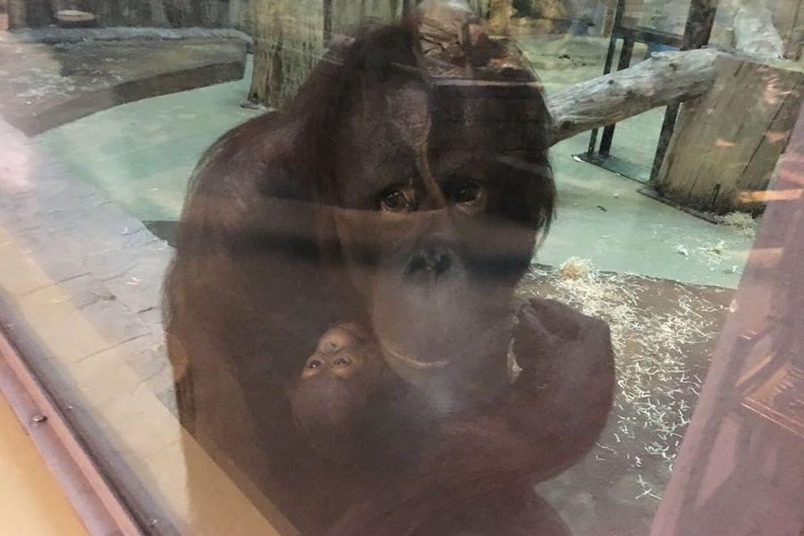 Последний раз орангутаны приносили потомство в Калининградском зоопарке более 20 лет назад. В 1995 году у самки Сипоры и самца Бадута родилась дочь Симона. Тогда мать не смогла самостоятельно выкормить детёныша, и эту роль на себя взяли сотрудники зоопарка.