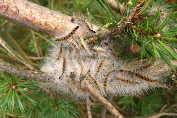 По его словам, сосновым походным шелкопрядом называют бабочек, гусеницы которых обладают инстинктом странствования целыми процессиями, за что и заслужили свое название. Это уникальное насекомое было случайно завезено на Куршскую косу в довоенное время с молодыми саженцами хвойных из Южной Европы. «Сосновый походный шелкопряд имеет двухгодичный цикл развития. Бабочки появляются в мае-июне, откладывают яйца в молодых посадках сосны. На следующий год, в июне-июле, из отложенных яиц вылупляются гусеницы. Гусеницы живут большими группами, поедают сосновую хвою, в течение лета пару раз линяют, образуя паутинные коконы. Из места пребывания в разветвлениях ветвей гусеницы в поисках пищи отправляются рядами, следуя друг за другом. Мигрируют по сосновым ветвям, питаясь хвоинками, а при похолодании собираются в клубки», — поясняет специалист.