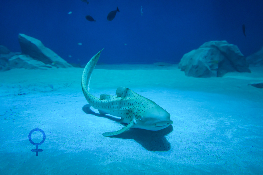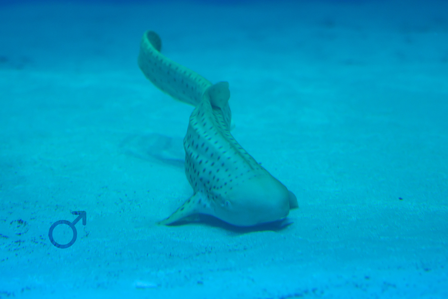 «В аквариумах „Планеты Океан“ поселились три вида акул — белоперые, черноперые и зебровые — всего девять представителей. Для начала мы решили дать имена зебровым акулам — их всего две. Зебровых акул можно встретить в тропических водах Индийского и Тихого океанов. Наши — родом из Индонезии — это самка и самец, им исполнилось два года. На первое время самку мы поселили в тоннельный аквариума, а самец разместился в первом — самом большом аквариуме», — рассказала главный инженер-рыбовод музея Татьяна Аксёнкина.