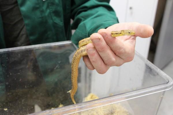 — Самка питона откладывает яйца через два месяца после спаривания, после инкубирует их — насиживает и проветривает кладку — в течение еще двух месяцев, и только потом из яиц вылупляются детеныши. В дикой природе тигровые питоны не очень распространенный вид, но зато довольно популярный в неволе. Опыт разведения тигровых питонов для нас новый, и что интересно: самец был обыкновенным тигровым питоном темного окраса, самка — тигровый питон-альбинос, и оба детеныша появились на свет тоже альбиносами, — рассказал «Афише Нового Калининграда.Ru» герпетолог Калининградского зоопарка.