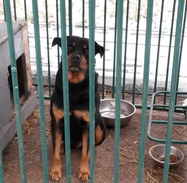 Чистокровный ротвейлер сейчас находится в Службе защиты животных. Ему 10 лет. У него умер хозяин, и пёс оказался никому не нужен. В трагической ситуации у каждого человека есть родственники и друзья для поддержки, а собака, к сожалению, без помощи человека этого лишена и обречена.