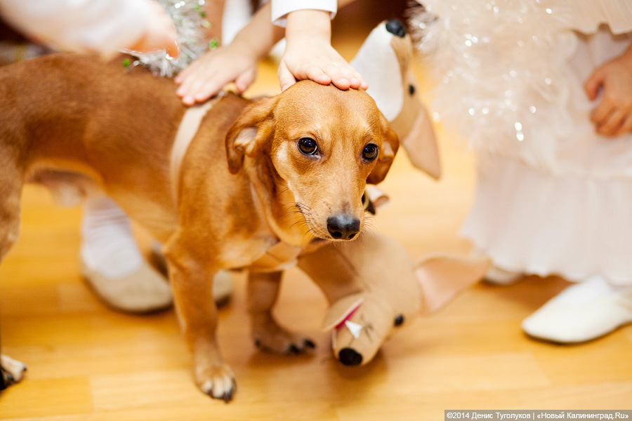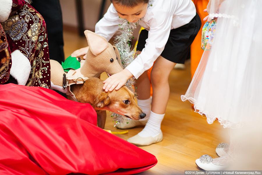 Этот праздник для детей из социального приюта устроили волонтёры инициативной группы «Дари добро, дари улыбку». Придумала всё волонтёр Марианна, и вот уже третий год энтузиасты ездят по детским домам Калининграда и области, показывают малышам представление, поздравляют их с Новым годом. Анна Брылевская и её четвероногие воспитанники принимают участие в праздниках второй год подряд. Костюмы для Анны и Апельсина бесплатно сшила Ирина Андреева специально для мероприятий.
