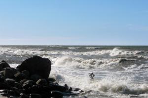 Близ поселка Поваровка калининградские рыбки, по их словам, наблюдали пару дельфинов.