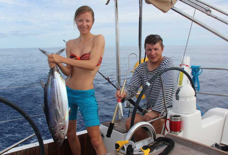 С топливом тоже все пока хорошо. У нас его примерно 250 литров, двигатель на круизной скорости 6 узлов ест 2.5 литра — итого примерно на 100 часов работы. Запасам топлива угрожает антициклон, который ползет нам наперерез и который пока неясно как обойти. Возможно, придется сутки топать на моторе через него. Утешает только, что и другим лодкам, скорее всего, тоже.