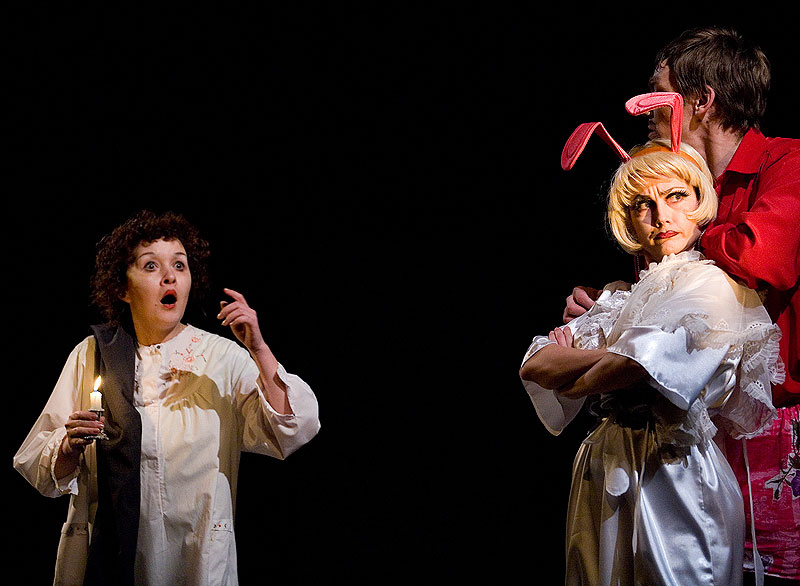 Следующей встречи Анной Трифоновой актеры ожидали, как праздника. Именно праздником хочется назвать то, что сотворила режиссер-постановщик Трифонова нового спектакля с актерской труппой молодого театра и, что немало важно, привлекая к творчеству студентов калининградского курса РАТИ мастерской Народного артиста России Дмитрия Бертмана. Молодые творческие силы плюс отменный драматургический материал, плюс многообразная музыкальная партитура спектакля да еще все это так элегантно размещено в красочном, уютном цветном пространстве! Графически точно простроенные мизансцены, ритм спектакля, везде точно работающий и на сюжет, и на характеры персонажей, - это приемы мастерства Анны Трифоновой и мы, уже видевшие ее работы на сцене театра на Бассейной, еще раз убеждаемся в счастливой судьбе такого сотворчества.