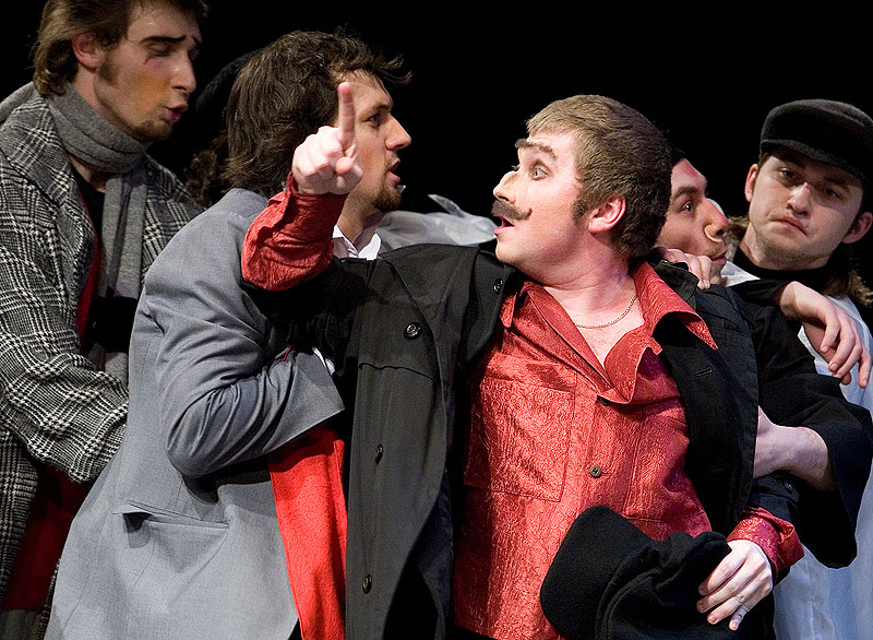 Несомненно интересны актерские работы в спектакле, где каждый образ, как бы хрестоматийный, знакомый по исполнению в спектаклях звездных театров. В этом была некая опасность: непременно станут сравнивать. Но сравнивать в данном случае нет никакого смысла: спектакль «бассейновцев» именно потому авторский, что не похож ни на какие московские или питерские постановки. Он эксклюзивен. Нравится это кому-то или нет. Хочется отметить, что молодые актеры театра уже в течение пяти лет, осваивая профессию, утверждаясь в ней, научились в каждой новой работе находить и новые краски для своих образов, и иную пластику, и всякий раз особое проникновение в суть образа. Нельзя не отметить эту «разность», эту «несхожесть» в игре Станислава Сапачева и Федора Памбукиди (Фигаро), Антона Арнтгольца и Михаила Ляхова (Граф Альмавива), Юлии Домаш ( Сюзанна), Елены Мочаловой и Светланы Макаревич ( Графиня), Галины Кузнецовой и Антона Макеева (Керубино), Евгения Макаревича (Бартоло) или, скажем, Алексея Зинякова и Олега Сингицына ( Судья), Михаила Шавякова и Ильи Рихтера (Базиль), Натальи Хасановой и Ольги Яблонской (Марселина) Надежды Шецко и Ирины Абрамовой (Фаншетта)). Те, кто постоянно ходит в театр, знает и любит его спектакли, вполне с этим согласятся: у актеров настоящая театральная школа, у них были, ( а у студентов и нынче есть!) талантливые педагоги и это сказывается на творческих результатах. Отличительной чертой этого театра является постоянное вовлечение в самый даже ответственный творческий процесс дебютантов - студентов калининградского курса РАТИ. И в данном спектакле это оправдало себя полностью: вся зажигательная атмосфера народных сцен, ритмика игры, танца, задора во многом зависит от них, только начинающих свой путь в искусство. И это обнадеживает: театр ожидает хорошее пополнение. Особой благодарности за юмор, за хорошее восприятие зрителями этакого комического миманса достойно трио - Василия Бухарина, Николая Перлухина и Ильи Борбачкова. Их «фонтаны» и «каштаны» - особые итермедии – ни на секунду не оставляли равнодушным зрительный зал. Музыка, написанная специально для спектакля Константином Белоноговым - арии, дуэты и трио ( тексты их сочинил Ваш покорный слуга) - в финале спектакля так умело режиссурой сплетенная со знаменитым «А браво, Фигаро, браво, брависсимо!», украшает спектакль и делает не просто музыкальным, а легким, воздушным, наполненным оптимизмом.