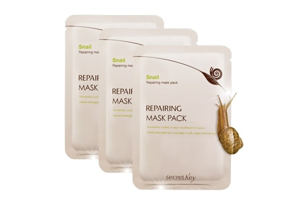 Тканевая восстанавливающая маска Snail Repairing Mask Pack от Sekret Key с муцином (экстрактом слизи улитки) обеспечивает наилучшее увлажнение, разглаживает кожу, уменьшая морщины, обладает осветляющим эффектом, борется с потемнениями и кругами под глазами. Муцин — мощнейший омолаживающий и восстанавливающий компонент в составе Snail Repairing Mask Pack, быстро и эффективно заживляет кожу, сохраняя увлажнение, ухаживает, осветляет, благодаря ему тон кожи становится более ровным, на ощупь она становится гладкой, исчезают морщины и неровности.