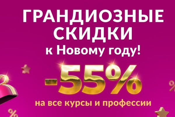 Скидки 55% на все курсы и профессии.