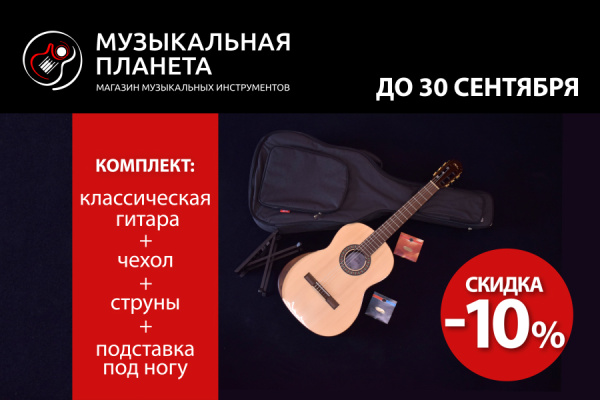 Для тебя в «Музыкальной планете» скидка 10% на комплект для игры на гитаре. В него входят: