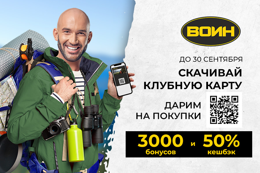 Ты с нами? До 30 сентября приходи в розничные магазины «Воин», зарегистрируй клубную карту и делай выгодные покупки.