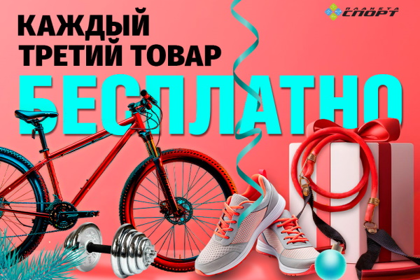 Весь декабрь в «Планете спорт» очень выгодно: Покупай 2 товара, а 3-й получай совершенно бесплатно!