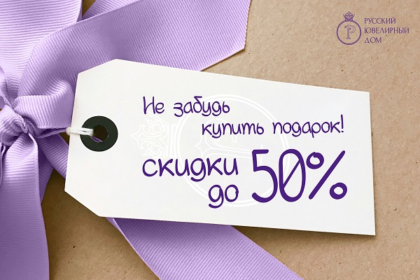 В сети ювелирных магазинов «Русский Ювелирный Дом» скидка 50% на золотые украшения и 40% на серебро и бриллианты.