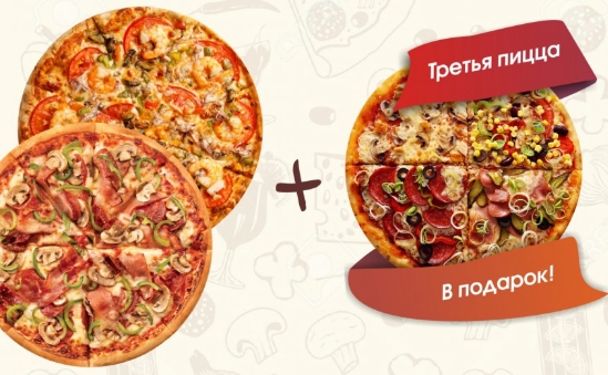 С 13 по 19 марта при заказе любых 2 больших пицц на вынос - Бекон большая тонкая в подарок!