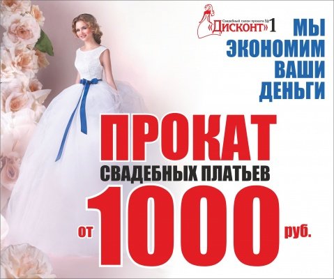 Прокат и продажа свадебных платьев от 1000 рублей.