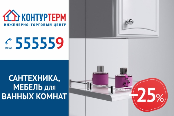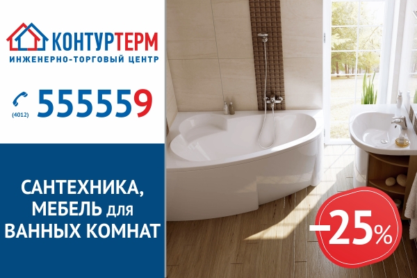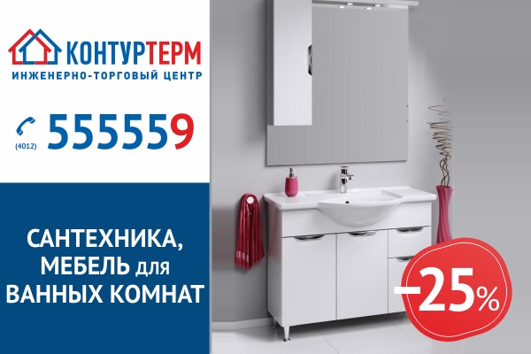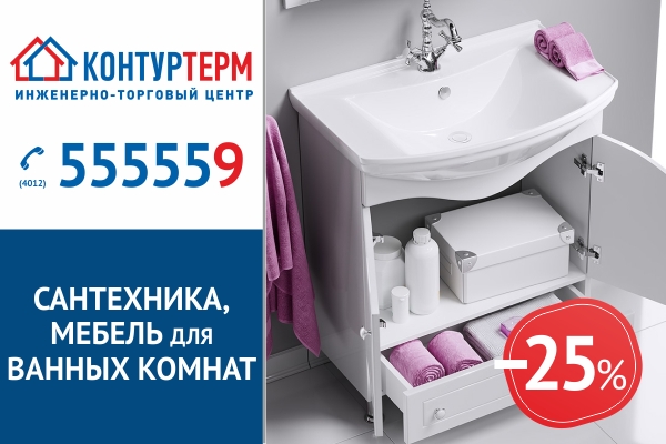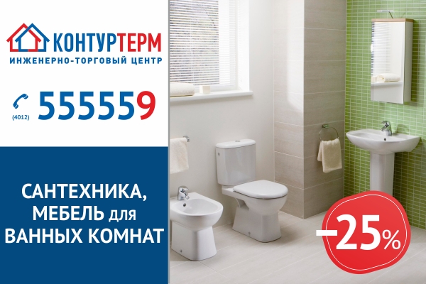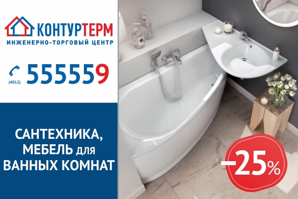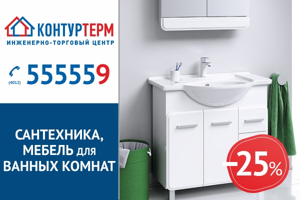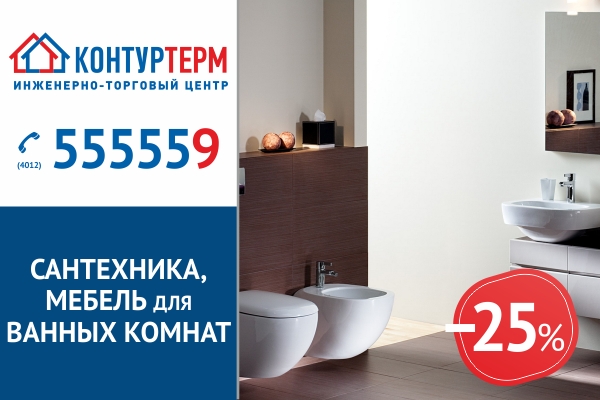 До 31 марта в ИТЦ «Контуртерм» сантехническое оборудование от ведущих мировых брендов, а также коллекции мебели для ванных комнат разных стилей, от классических до «модерн», со скидкой 25%!