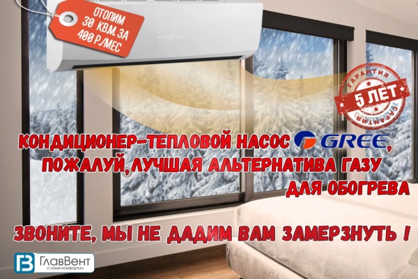 До Нового года при покупке теплового насоса компания «ГлавВент» дарит скидку 5%. Кодовые слова акции — «Новый Калининград».