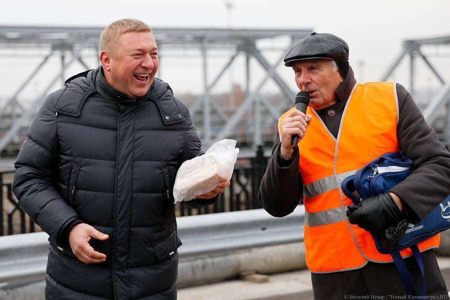 Мэру Александру Ярошуку на день рождения подарили большой кусок сала. Такой подарок градоначальнику сделал руководитель проектной организации, профессор Александр Прокофьев на открытии моста на ул. Суворова, передает корреспондент «Нового Калининграда.Ru».