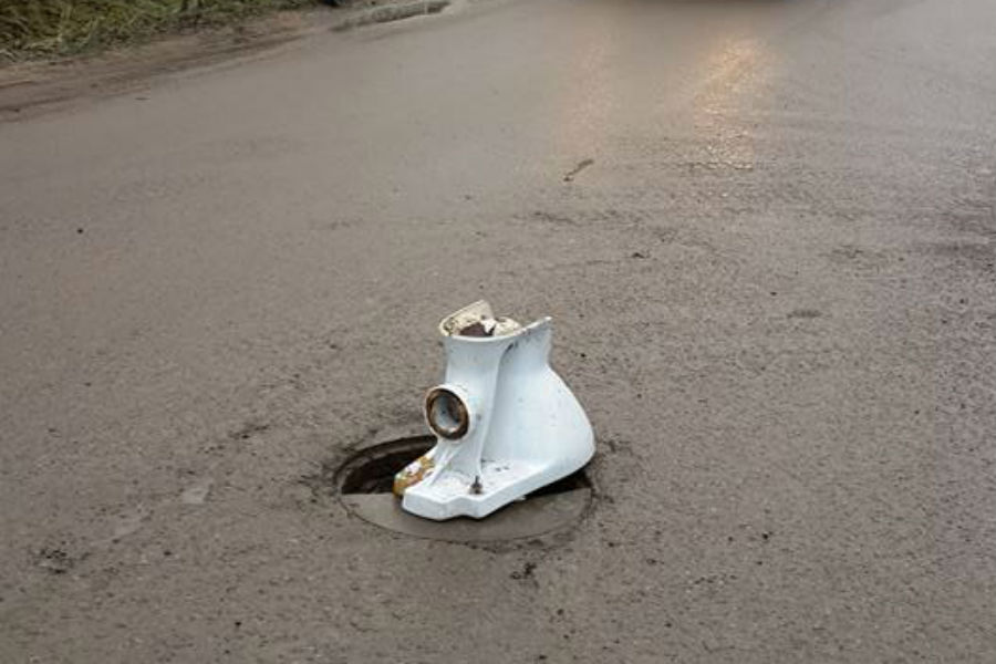 «Находчивость куммунальщиков не знает границ! Если отмечать канализационный колодец, то конечно — унитаз.Правда, нужно честно сказать, ребята очень быстро заменили люк, и унитаз, сослужив службу, был выставлен уже на обочине», — отметил Леденев.