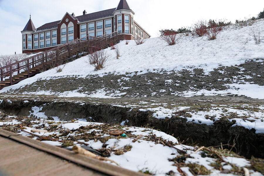 Осыпание грунта в районе променада у государственного комплекса «Янтарь» в Пионерском произошло