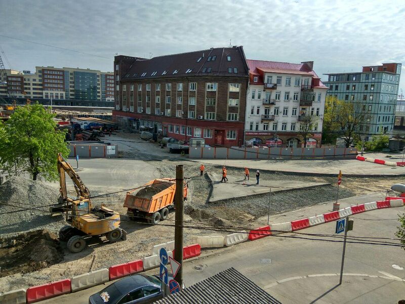 Напомним, перекрёсток закрыли на реконструкцию 27 июня 2016 года одновременно с Высоким мостом. На Большой Песочной и на части Октябрьской от перекрёстка до Хмельницкого ввели одностороннее движение. Развязку снова открыли для движения в октябре, причём без трамвайных путей и только с одним слоем асфальта. «Перекрёсток будет в завершённом состоянии, все сети будут сделаны и первый слой асфальта. Второй не будем делать, потому что будет подъезжать техника, которая будет снабжать стройку, поэтому мы второй слой положим в следующем году. Тем не менее, он будет открыт и в хорошем состоянии — как, например, эстакадный мост — там только один слой асфальта, конечный вот сейчас только начнут класть, в ближайшее время», — сказал тогда глава Калининграда Александр Ярошук.