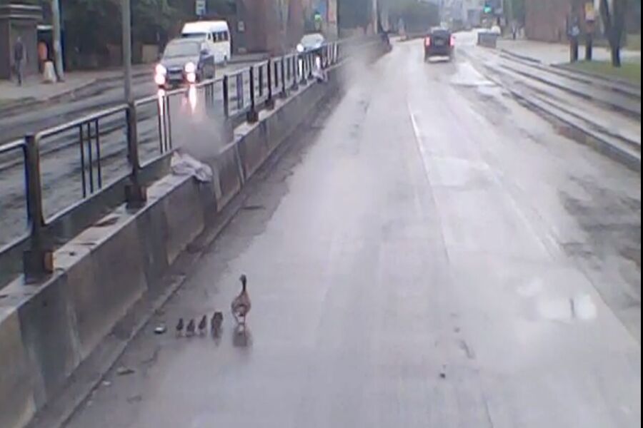 На видеоролике заметно, что утка и шесть утят пытались перейти дорогу в районе Закхаймских ворот. При этом несколько автомобилистов вышли на проезжую часть и попытались на руках перенести птиц в безопасное место.