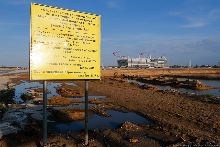 Временный глава региона отметил, что речь идёт о самых важных дорожных объектах, в частности — дорогах, соединяющих территорию вокруг строящегося стадиона и основную часть Острова, включая Солнечный бульвар. «К сожалению, пока есть определённые трудности, но эксперты уже дали заключения, я надеюсь, что в ближайшие недели мы сможем все вопросы решить и в августе к работам приступим», — сказал врио губернатора.